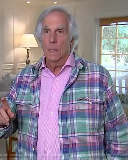 Ralph Lauren Classic Fit Plaid Twill Workshirt worn by Henry Winkler on Access Hollywood