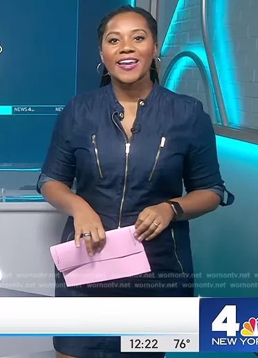 Kay Angrum on NBC News Daily on NBC was spotted wearing this zip front denim dress on NBC News Daily on Jun 26 2024's episode. Kay's Dress is the Denim Dress with Zipper Details by Calvin Klein.