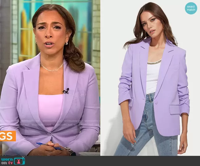 Michelle Miller on CBS Mornings on CBS was spotted wearing this purple blazer on CBS Mornings on Jul 17 2023's episode. Michelle's Jacket is the Madison Blazer in Lavender by Generation Love .