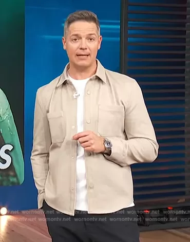on Access Hollywood on NBC was spotted wearing this beige jacket on Access Hollywood on Jul 17 2023's episode. 's Jacket is the Stretch Pocket Overshirt by Zara.