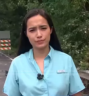 Columbia PFG Tamiami lI Short Sleeve Shirt in Gulf Stream worn by Emilie Ikeda on NBC News Daily