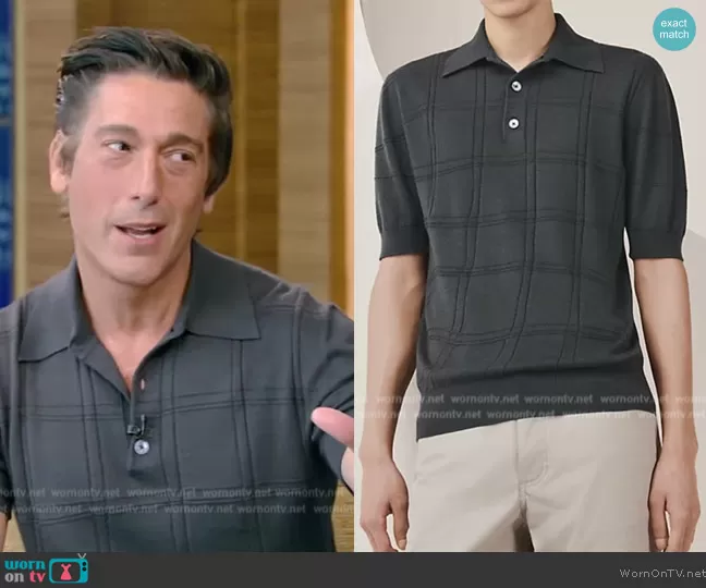 on Live with Kelly and Mark on Disney ABC Home Entertainment was spotted wearing this gray plaid polo on Live with Kelly and Mark on Jul 18 2023's episode. 's Shirt is the Vague De Carreaux Polo Shirt by Hermes.