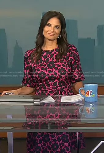 Darlene Rodriguez on Today on NBC was spotted wearing this black and pink floral dress on Today on Jul 19 2023's episode. Darlene's Dress is the Rosy Garden Tie-waist Dress by Kate Spade.