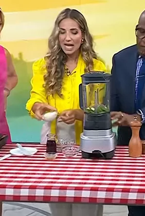 on Today on NBC was spotted wearing this yellow tie neck blouse on Today on Jul 19 2023's episode. 's Top is the Tied Satin Blouse by Zara.