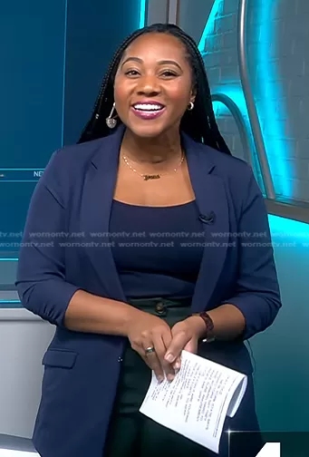 Kay Angrum on NBC News Daily on NBC was spotted wearing this navy 3/4 sleeve blazer on NBC News Daily on Dec 31 2024's episode. Kay's Jacket is the Menswear Blazer in Indigo Sea by INC International Concepts.