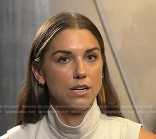 on Today on NBC was spotted wearing this beige mock neck top on Today on Jul 20 2023's episode. 's Top is the Sportswear Mock Neck Crop Top by Nike.