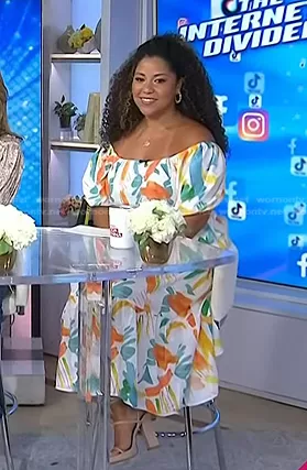 on Today on NBC was spotted wearing this white printed midi dress on Today on Jul 20 2023's episode.