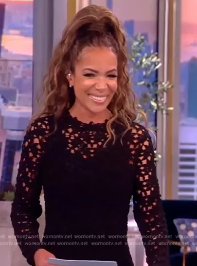 Sunny Hostin on The View on ABC was spotted wearing this black lace long sleeve dress on The View on Jul 21 2023's episode. Sunny's Dress is the Crochet-knit crew-neck dress by Carolina Herrera.
