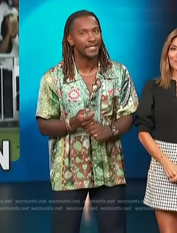 Scott Evans on Access Hollywood on NBC was spotted wearing this green paisley print shirt on Access Hollywood on Jul 21 2023's episode. Scott's Shirt is the Paisley Short Sleeve Shirt by .
