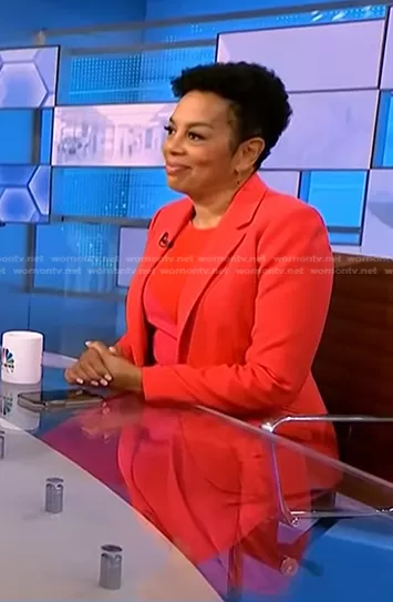 on NBC News Daily on NBC was spotted wearing this Sharon Epperson’s pink colorblock dress on NBC News Daily on Sep 18 2023's episode. 's Dress is the Marla Dress by Hobbs London.
