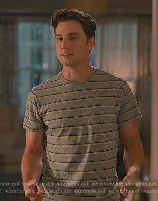 (played by Carson Rowland) on Sweet Magnolias on Netflix was spotted wearing this gray stripe tee on Sweet Magnolias on episode 'On This Foundation' (3x05) in Jul 2023. 's Shirt is the Signature Crew Tee in Heather Grey Sunset Stripe by Marine Layer.