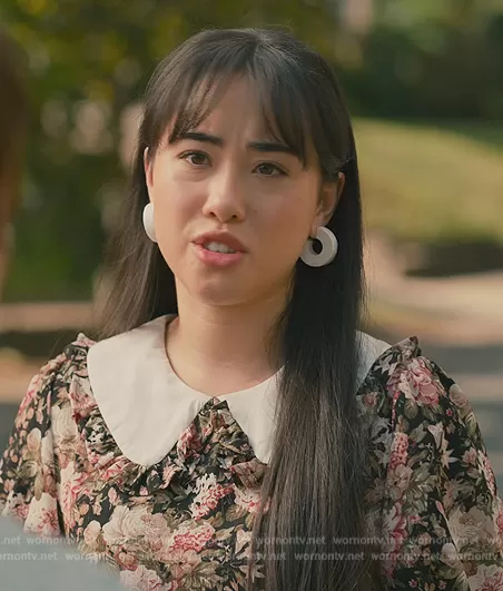 (played by Artemis) on Sweet Magnolias on Netflix was spotted wearing this black floral print dress on Sweet Magnolias on episode 'Somebody I'm Longing to See' (3x07) in Jul 2023. 's Dress is the Contrast Collar Minidress by En Saison.