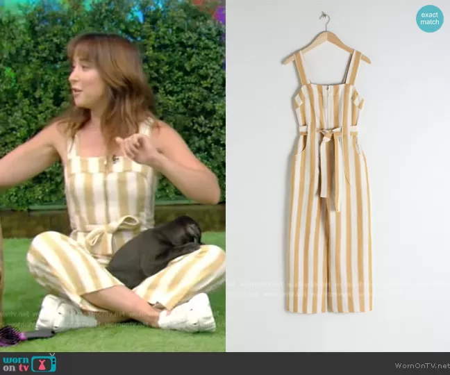 on Live with Kelly and Mark on Disney ABC Home Entertainment was spotted wearing this striped jumpsuit on Live with Kelly and Mark on Jul 25 2023's episode. 's Jumpsuit is the Striped Cotton Jumpsuit by & Other Stories.