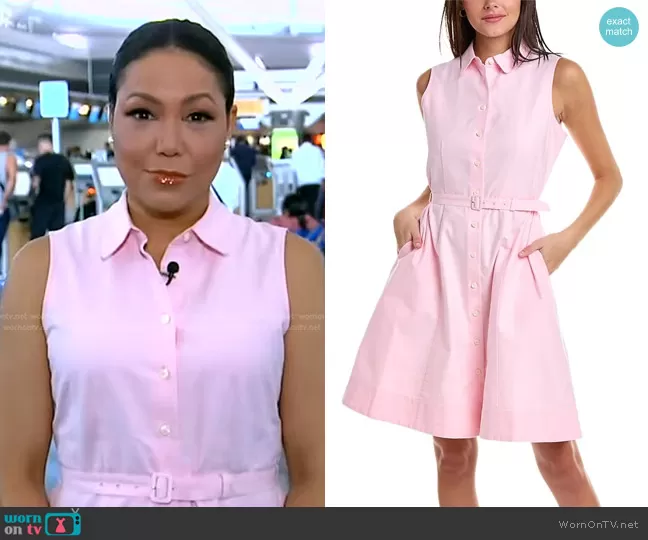 Stephanie Ramos on Good Morning America on ABC was spotted wearing this pink belted sleeveless shirtdress on Good Morning America on Sep 23 2023's episode. Stephanie's Dress is the Sleeveless Shirtdress by Brooks Brothers.