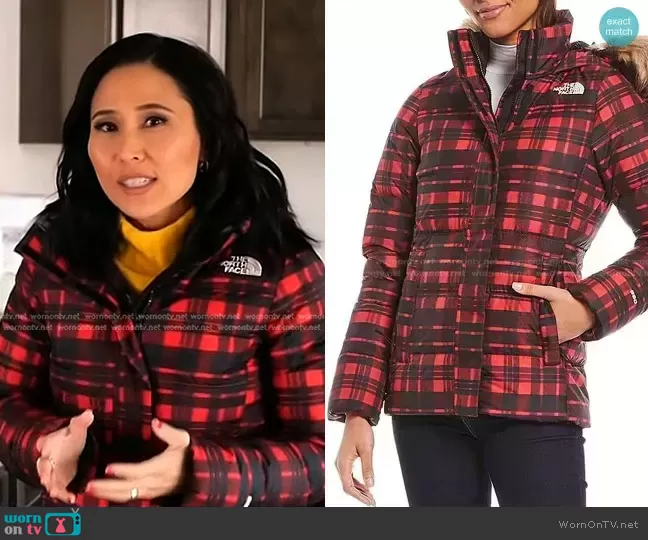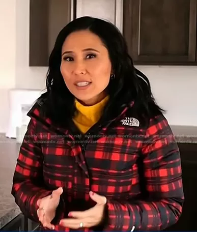 The North Face Gotham Zip Front Plaid Puffer Jacket worn by Vicky Nguyen on NBC News Daily