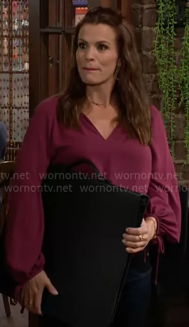 Chelsea Lawson (played by Melissa Claire Egan) on The Young and the Restless on CBS was spotted wearing this magenta pink tie sleeve top on The Young and the Restless on Jul 27 2023's episode. Chelsea's Top is the Vittoria Dress in Aubergine by Amanda Uprichard .