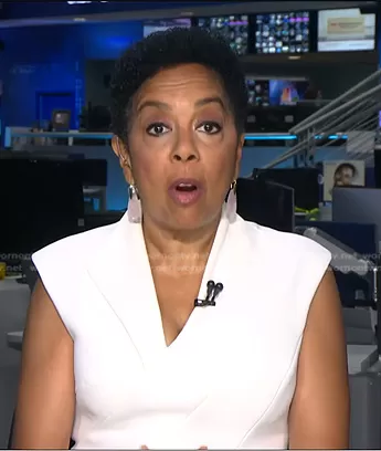 on NBC News Daily on NBC was spotted wearing this white v-neck dress and earrings on NBC News Daily on Jul 26 2023's episode. 's Dress is the Geodese Narnia Dress by Ted Baker . 's Earrings is the Marty Drop Earrings by Kendra Scott.