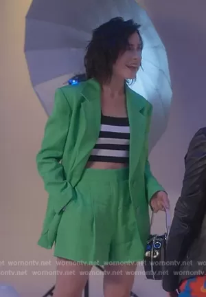 (played by ) on Grown-ish on Freeform was spotted wearing this green two button blazer on Grown-ish on episode 'Right My Wrongs' (6x05) in Jul 2023.