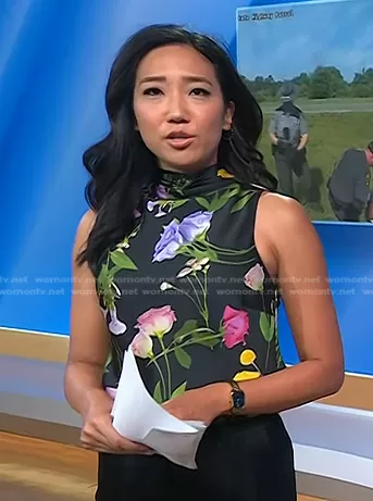 on Today on NBC was spotted wearing this black floral sleeveless top on Today on Jul 28 2023's episode. 's Top is the Demitri Floral-Print Top by Ted Baker.