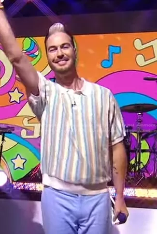 on Good Morning America on ABC was spotted wearing this striped polo shirt on Good Morning America on Jul 28 2023's episode. 's Shirt is the Surface Wavy Stripe Polo Sweater by Obey.