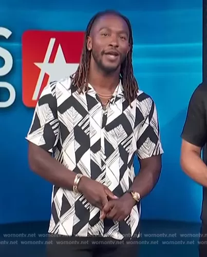 Scott Evans on Access Hollywood on NBC was spotted wearing this abstract print shirt on Access Hollywood on Jul 31 2023's episode. Scott's Shirt is the Geometric Print Shirt by Zara.