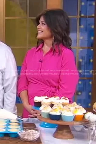 on Good Morning America on ABC was spotted wearing this pink wrap shirtdress on Good Morning America on Jul 31 2023's episode.
