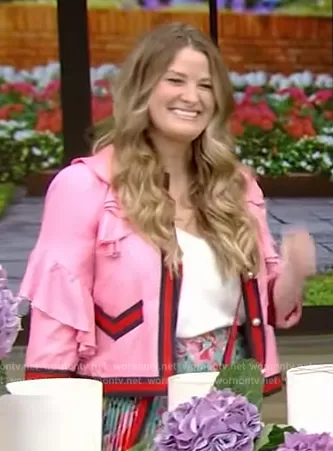 on Live with Kelly and Mark on Disney ABC Home Entertainment was spotted wearing this pink contrast ruffle blouse on Live with Kelly and Mark on Aug 01 2023's episode. 's Top is the 2016 Evening Jacket by Gucci.