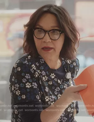 (played by Patricia Black) on And Just Like That on HBO was spotted wearing this blue floral print top on And Just Like That on episode 'A Hundred Years Ago' (2x08) in Aug 2023. 's Top is the Paw Print Top by Uniform Advantage.