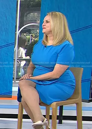 on Today on NBC was spotted wearing this blue short sleeve dress on Today on Aug 03 2023's episode. 's Dress is the Faux Wrap Sheath Dress by Maggy London.