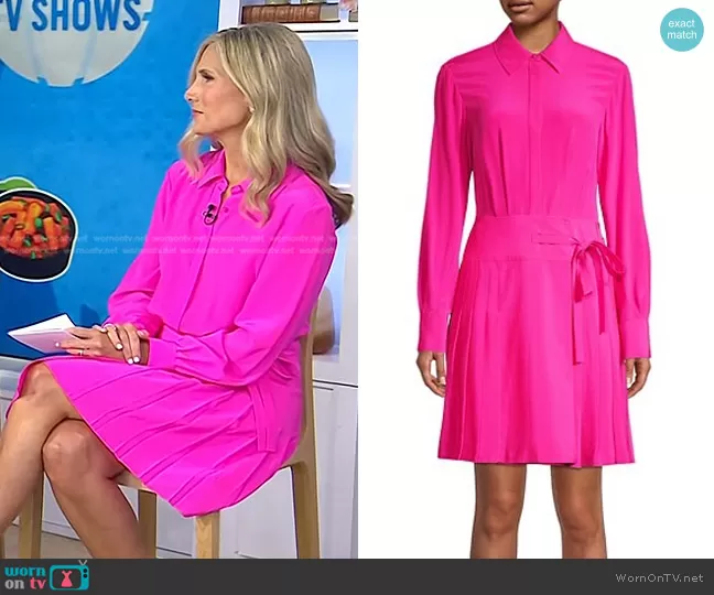 on Today on NBC was spotted wearing this fuchsia shirtdress on Today on Aug 08 2023's episode. 's Dress is the Short Pleated Shirt Dress by Jason Wu.