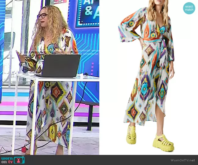 on Today on NBC was spotted wearing this multicolor printed dress on Today on Aug 08 2023's episode. 's Dress is the Abstract Print Hostess Dress by Smythe.