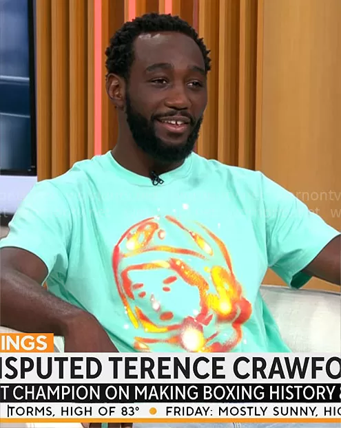 on CBS Mornings on CBS was spotted wearing this aqua graphic t-shirt on CBS Mornings on Aug 09 2023's episode. 's Shirt is the Billionarus SS T-Shirt in Ice Green by Billionaire Boys Club.
