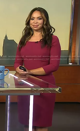 Adelle Caballero on Today on NBC was spotted wearing this burgundy 3/4 sleeve dress on Today on Aug 09 2023's episode. Adelle's Dress is the Rowan Sheath Dress by Black Halo.