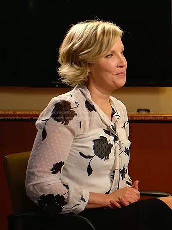 on Today on NBC was spotted wearing this white floral tie neck blouse on Today on Aug 23 2023's episode. 's Top is the Floral Tie Neck Button Down Blouse by Monteau.