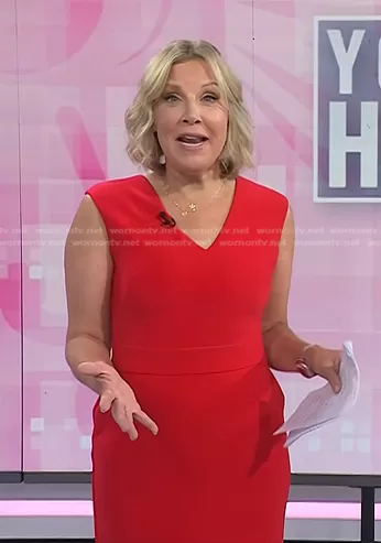 on Today on NBC was spotted wearing this red v-neck sheath dress on Today on Aug 10 2023's episode. 's Dress is the Sleeveless Sheath Dress by Lauren Ralph Lauren.