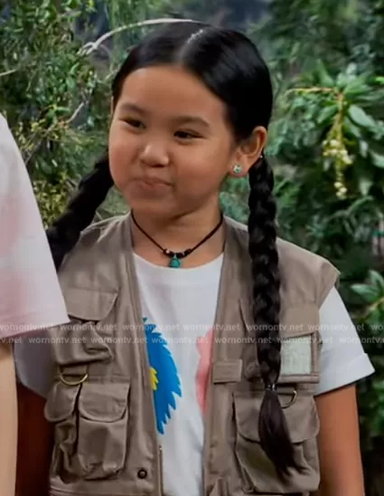 (played by Brandilyn Cheah) on Bunkd on Disney was spotted wearing this utility vest on Bunkd on episode 'Cursed Day of Camp' (7x01) in Aug 2023. 's Vest is the Kids Sand Cargo Vest by Coal n Terry.