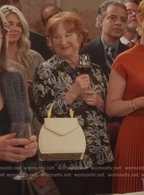 (played by Elaine Bromka) on And Just Like That on HBO was spotted wearing this floral print blouse on And Just Like That on episode 'There Goes the Neighbourhood' (2x09) in Aug 2023. 's Top is the Scottie Floral Frost Toile Crepe Blouse by Lafayette 148.