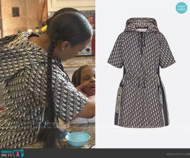 Kandi Burruss on The Real Housewives of Atlanta on Bravo was spotted wearing this hooded logo printed dress on The Real Housewives of Atlanta on episode 'Sip & Spill ... the Tea' (15x14) in Aug 2023. Kandi's Dress is the Short Hooded Dress Black by Dior.