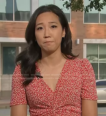 on Today on NBC was spotted wearing this red print twist front dress on Today on Aug 15 2023's episode. 's Dress is the Textured Printed Dress by Mango.