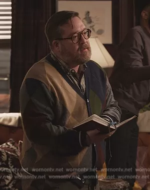 (played by Michael Cyril Creighton) on Only Murders in the Building on Hulu was spotted wearing this argyle knit cardigan on Only Murders in the Building on episode 'Grab Your Hankies' (3x03) in Aug 2023. 's Sweater is the Argyle Cashmere Cardigan by Todd x Snyder FootJoy.