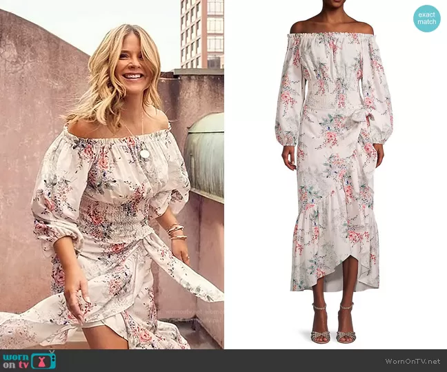 Jenna Bush Hager on Today on NBC was spotted wearing this white floral off-shoulder top and skirt on Today on Aug 16 2023's episode. Jenna's Top is the Noa Off-The-Shoulder Blouse by Kobi Halperin . Jenna's Skirt is the Alix Skirt by Kobi Halperin.