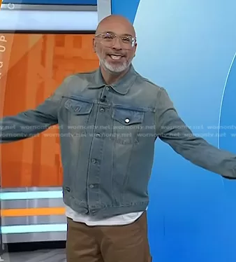 on Today on NBC was spotted wearing this denim jacket on Today on Aug 16 2023's episode. 's Jacket is the Stonewashed Denim Jacket by Prada.