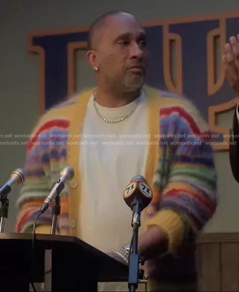 (played by ) on Grown-ish on Freeform was spotted wearing this striped mohair sweater on Grown-ish on episode 'Family Feud' (6x08) in Aug 2023. 's Sweater is the Striped buttoned-up cardigan by Marni.
