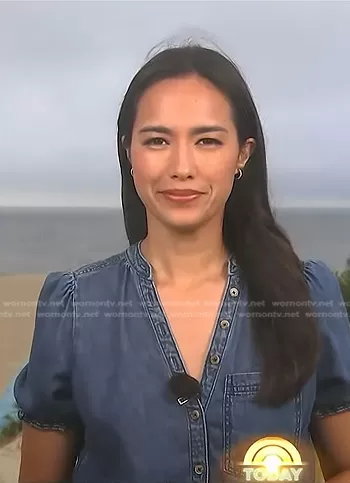 Emilie Ikeda on Today on NBC was spotted wearing this button front denim top on Today on Aug 17 2023's episode. Emilie's Top is the Aly Henley Shirt by Pilcro.