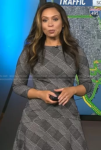 Adelle Caballero on Today on NBC was spotted wearing this grey plaid dress on Today on Mar 04 2024's episode. Adelle's Dress is the Plaid Printed Dress by Lauren Ralph Lauren.