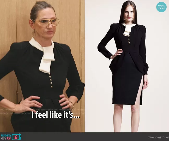 Jenna Lyons on The Real Housewives of New York City on Bravo was spotted wearing this black contrast peplum dress on The Real Housewives of New York City on episode 'Anniversorry, Not Sorry' (14x06) in Aug 2023. Jenna's Dress is the Roy Peplum Dress by Altuzarra.