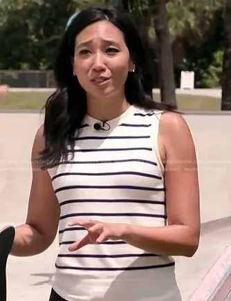 on Today on NBC was spotted wearing this white striped sleeveless top on Today on Aug 24 2023's episode. 's Top is the Basic Knit Top in Striped by Zara.