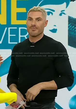 on Today on NBC was spotted wearing this black Prada logo sweatshirt on Today on Aug 24 2023's episode. 's Sweater is the Superfine Wool Sweater by Prada.