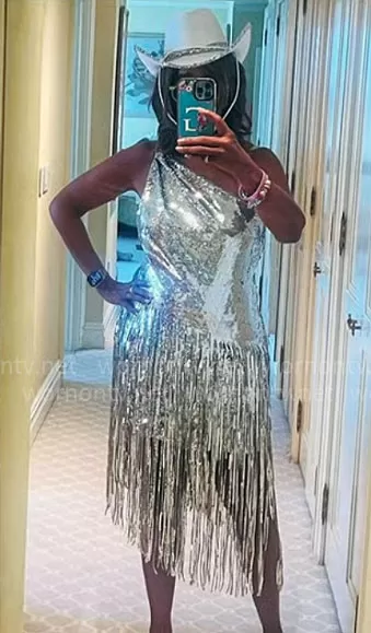 Gayle King on CBS Mornings on CBS was spotted wearing this silver one-shoulder dress (tried on) on CBS Mornings on Aug 28 2023's episode. Gayle's Dress is the Tonya Dress by Halston.