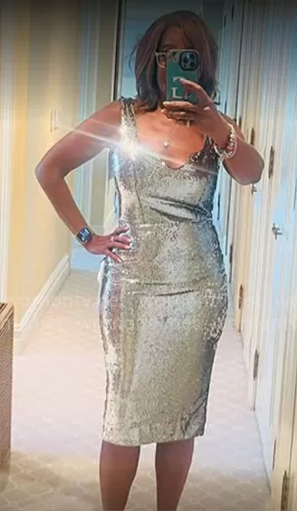 Gayle King on CBS Mornings on CBS was spotted wearing this silver sequin dress (tried on) on CBS Mornings on Aug 28 2023's episode. Gayle's Dress is the Sloan Dress by Dress the Population.